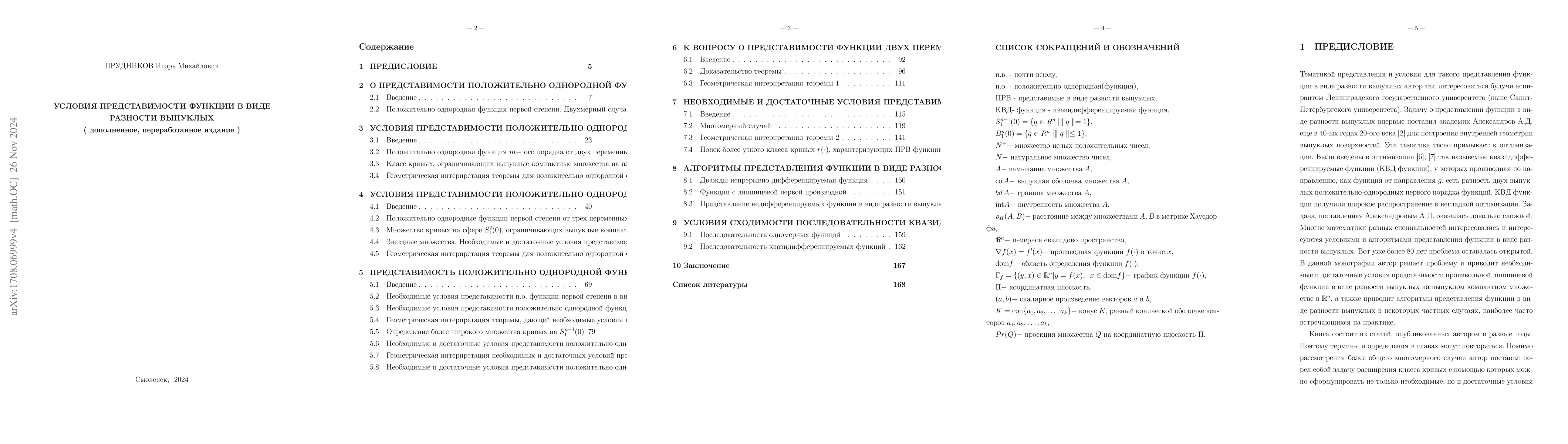 There are given conditions for represention of a function of many arguments as the difference of convex functions.
