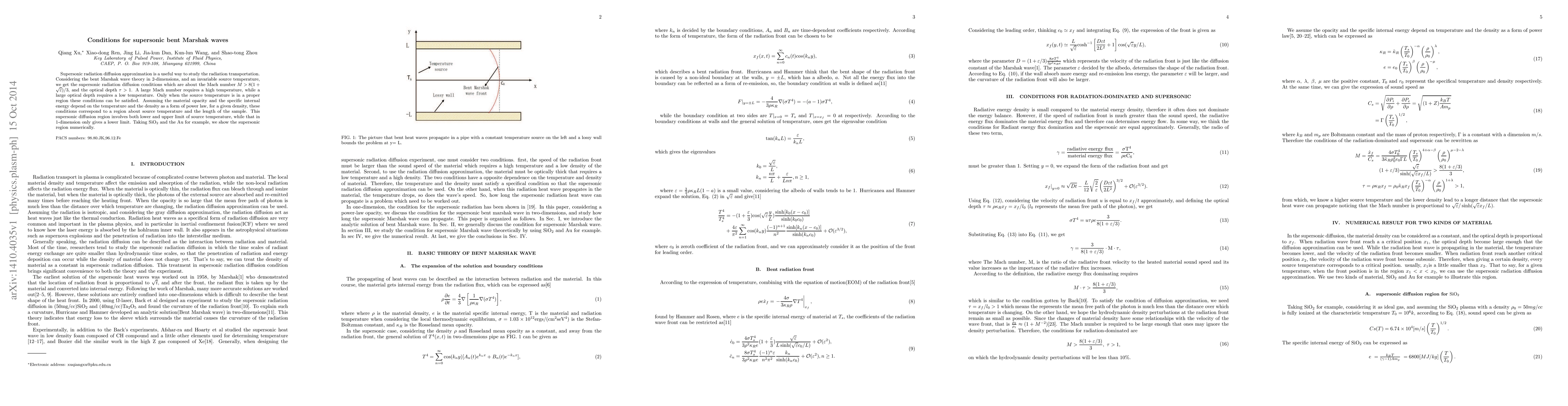 Supersonic radiation diffusion approximation is a useful way to study the radiation transportation. Considering the bent Marshak wave theory in 2-dimensions, and an invariable source temperature, we get the supersonic radiation diffusion conditions which are about the Mach number $M>8(1+\sqrt{\ep})/3$, and the optical depth $\tau>1$. A large Mach number requires a high temperature, while a large optical depth requires a low temperature. Only when the source temperature is in a proper region these conditions can be satisfied. Assuming the material opacity and the specific internal energy depend on the temperature and the density as a form of power law, for a given density, these conditions correspond to a region about source temperature and the length of the sample. This supersonic diffusion region involves both lower and upper limit of source temperature, while that in 1-dimension only gives a lower limit. Taking $\rm SiO_2$ and the Au for example, we show the supersonic region numerically.