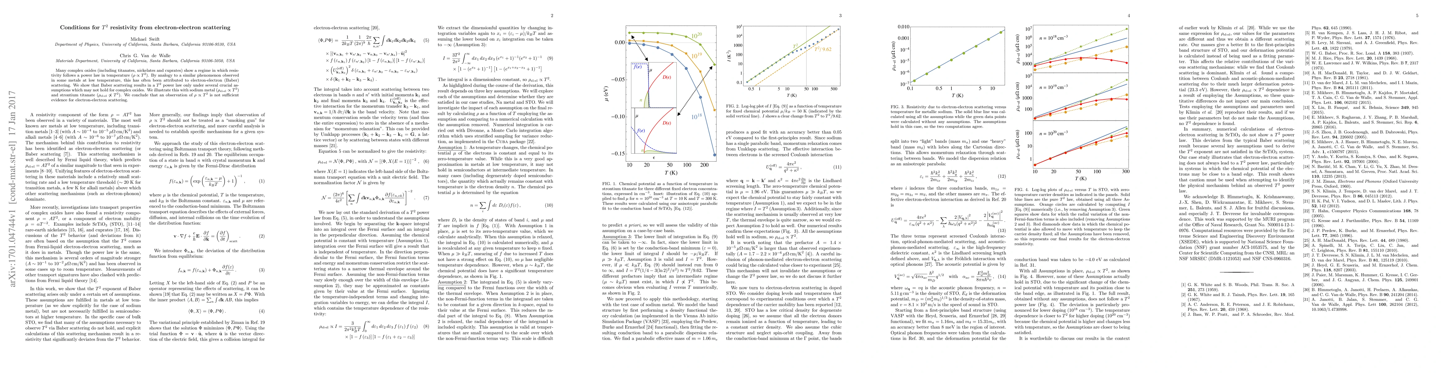 Many complex oxides (including titanates, nickelates and cuprates) show a regime in which resistivity follows a power law in temperature ($\rho\propto T^2$). By analogy to a similar phenomenon observed in some metals at low temperature, this has often been attributed to electron-electron (Baber) scattering. We show that Baber scattering results in a $T^2$ power law only under several crucial assumptions which may not hold for complex oxides. We illustrate this with sodium metal ($\rho_\text{el-el}\propto T^2$) and strontium titanate ($\rho_\text{el-el}\not\propto T^2$). We conclude that an observation of $\rho\propto T^2$ is not sufficient evidence for electron-electron scattering.
