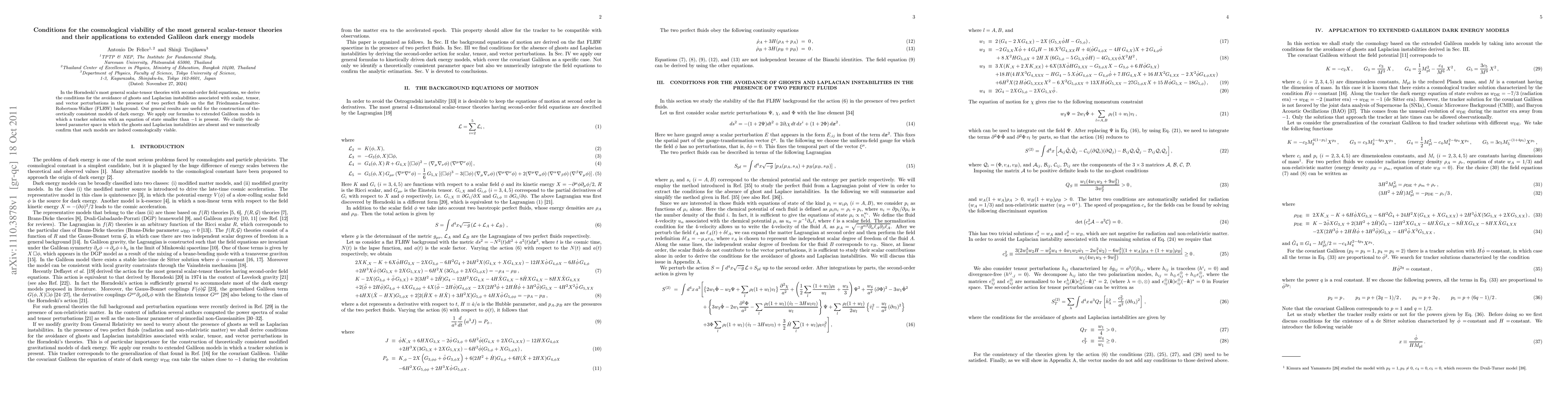 This paper derives conditions to avoid ghosts and instabilities in Horndeski's scalar-tensor theories on a FLRW background, focusing on extended Galileon dark energy models. It identifies the viable parameter space for these models, confirming their cosmological viability through numerical analysis.