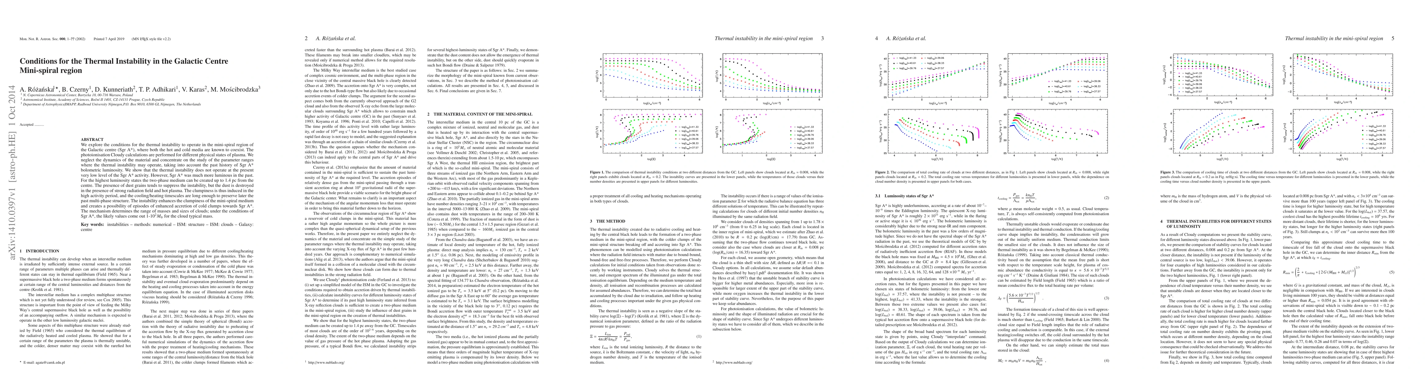 This paper investigates the conditions for thermal instability in the mini-spiral region of the Galactic centre (Sgr A*), finding that it does not operate at present low activity levels. However, during past high luminosity periods, thermal instability could create a two-phase medium up to 1.4 pc from the centre, enhancing clumpiness and potentially leading to enhanced accretion of cold clumps.