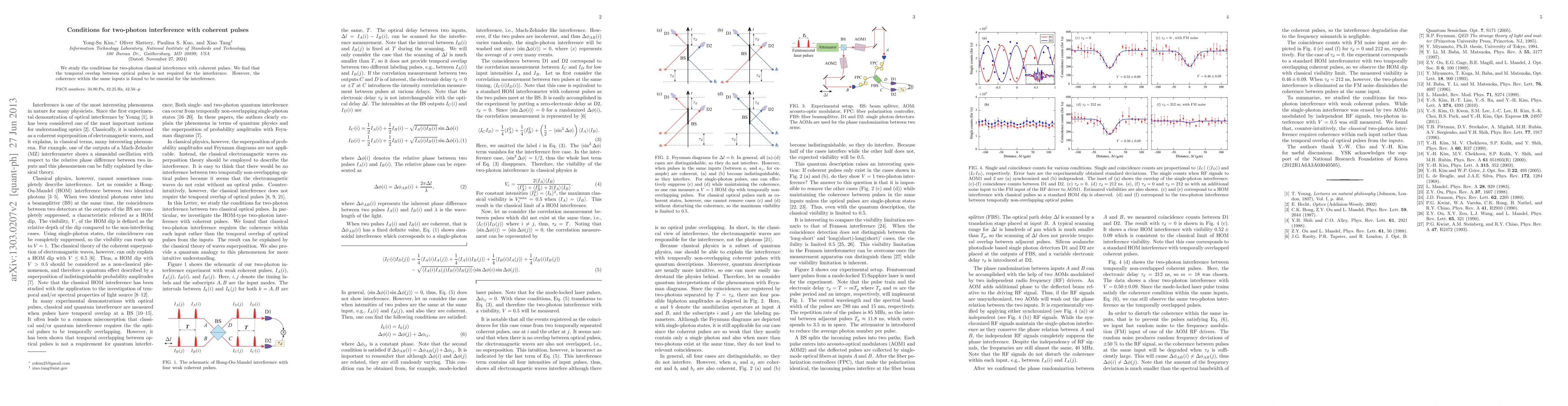 Summary: This study reveals that two-photon interference with coherent pulses does not necessitate temporal overlap between optical pulses but requires coherence within the same input sources to manifest interference effects.
