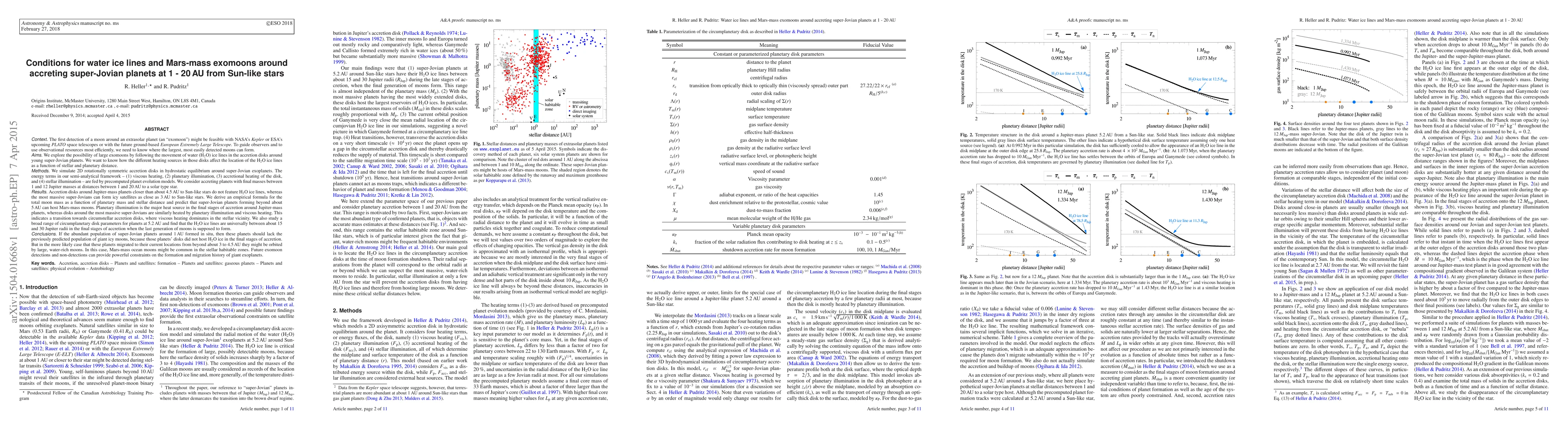 Exomoon detections might be feasible with NASA's Kepler or ESA's upcoming PLATO mission or the ground-based E-ELT. To use observational resources most efficiently we need to know where the largest, most easily detected moons can form. We explore the possibility of large exomoons by following the movement of water (H2O) ice lines in the accretion disks around young super-Jovian planets. We want to know how different heating sources in those disks affect the H2O ice lines. We simulate 2D rotationally symmetric accretion disks in hydrostatic equilibrium around super-Jovian exoplanets. The energy terms in our semi-analytical model -- (1) viscous heating, (2) planetary illumination, (3) accretional heating, and (4) stellar illumination -- are fed by precomputed planet evolution tracks. We consider planets accreting 1 to 12 Jupiter masses at distances between 1 and 20 AU to a Sun-like star. Accretion disks around Jupiter-mass planets closer than ~4.5 AU to Sun-like stars do not feature H2O ice lines, but the most massive super-Jovians can form icy satellites as close as ~3 AU to Sun-like stars. Super-Jovian planets forming beyond ~5 AU can host Mars-mass moons. We study a broad range of disk parameters for planets at 5.2 AU and find that the H2O ice lines are universally between ~15 and 30 Jupiter radii when the last generation of moons is forming. If the abundant population of super-Jovian planets at ~1 AU formed in situ, then they should lack giant icy moons because their disks did not host H2O ice in the final stages of accretion. In the more likely case that these planets migrated to their current locations from beyond a few AU, they might be orbited by large, H2O-rich moons. In this case, Mars-mass ocean moons might be common in the stellar habitable zones. Future exomoon searches can provide powerful constraints on the formation and migration history of giant exoplanets.