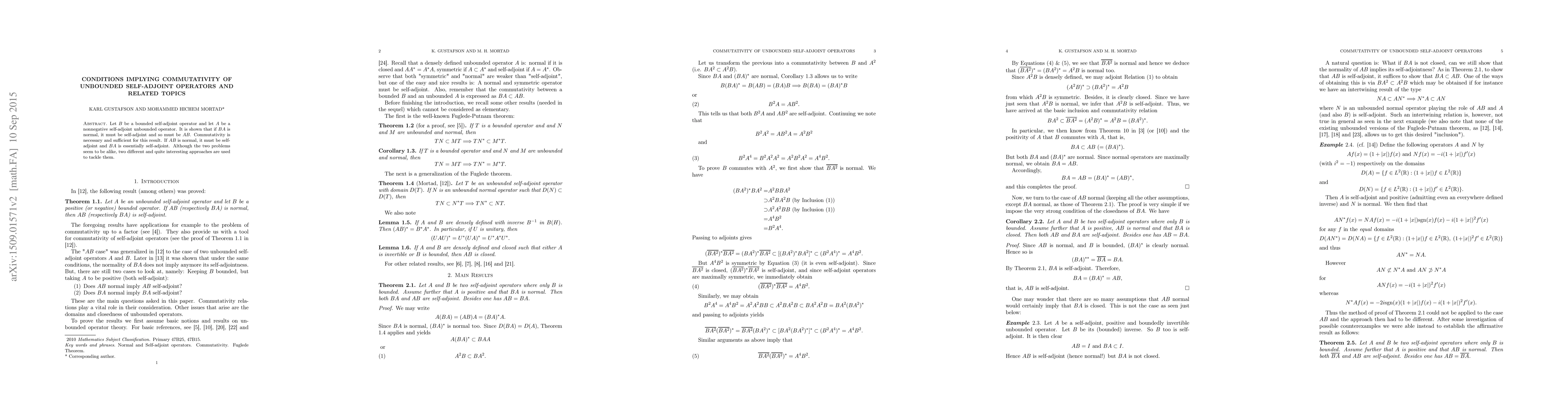 This paper explores conditions under which the product of a bounded self-adjoint operator $B$ and a nonnegative self-adjoint unbounded operator $A$ implies commutativity. It demonstrates that if $BA$ is normal, then $AB$ is also self-adjoint, necessitating commutativity. Different approaches are used for the cases when $AB$ is normal.
