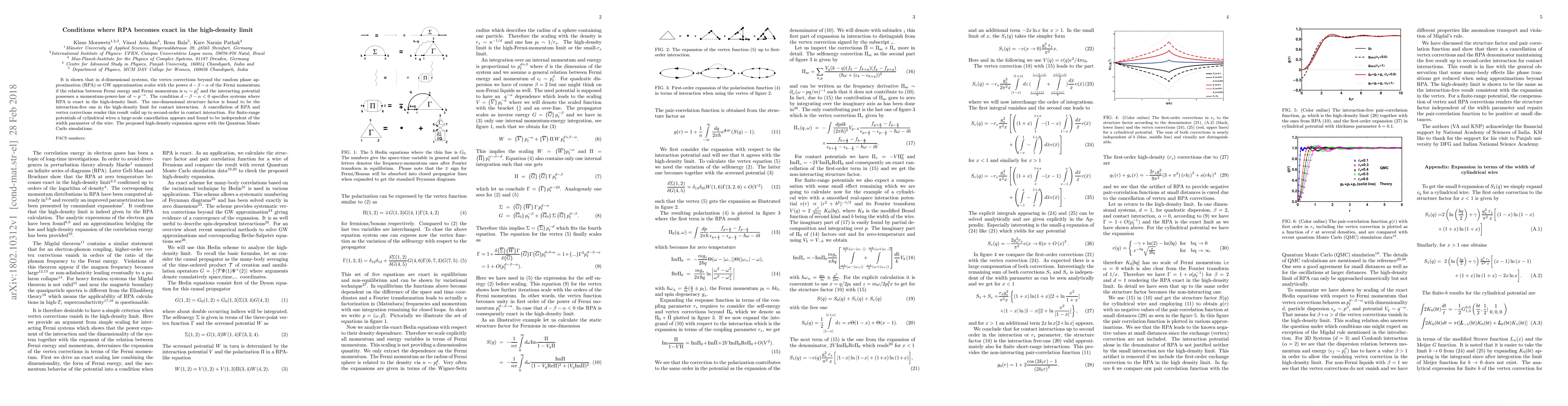 It is shown that in $d$-dimensional systems, the vertex corrections beyond the random phase approximation (RPA) or GW approximation scales with the power $d-\beta-\alpha$ of the Fermi momentum if the relation between Fermi energy and Fermi momentum is $\epsilon_{\rm f}\sim p_{\rm f}^\beta$ and the interacting potential possesses a momentum-power-law of $\sim p^{-\alpha}$. The condition $d-\beta-\alpha<0$ specifies systems where RPA is exact in the high-density limit. The one-dimensional structure factor is found to be the interaction-free one in the high-density limit for contact interaction. A cancellation of RPA and vertex corrections render this result valid up to second-order in contact interaction. For finite-range potentials of cylindrical wires a large-scale cancellation appears and found to be independent of the width parameter of the wire. The proposed high-density expansion agrees with the Quantum Monte Carlo simulations.