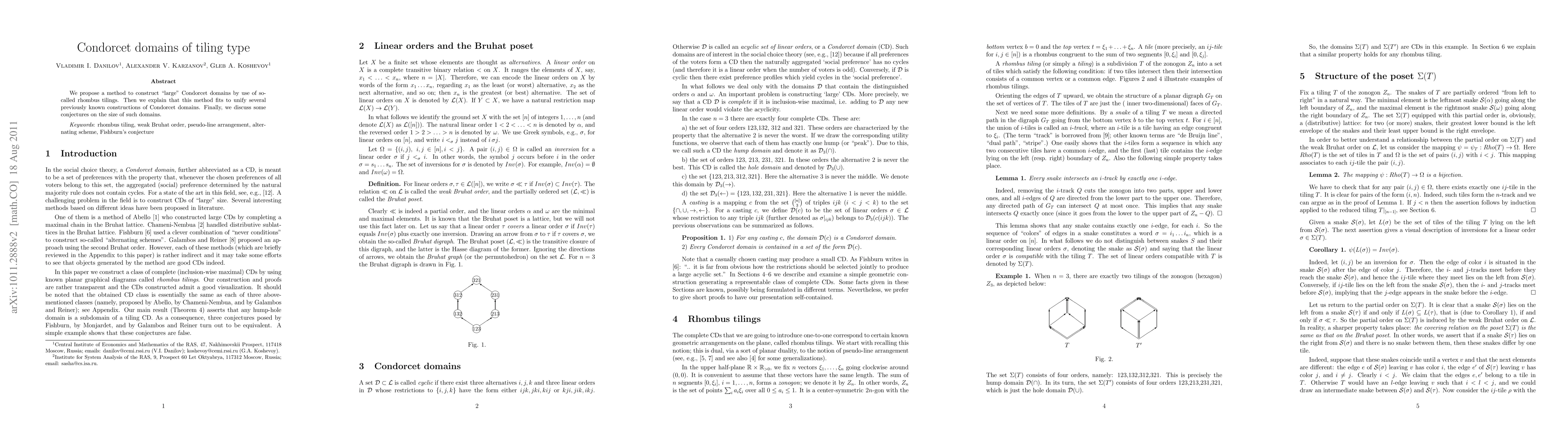 The paper proposes a method of constructing 'large' Condorcet domains (CDs) using rhombus tiling diagrams, unifying several earlier constructions of CDs.