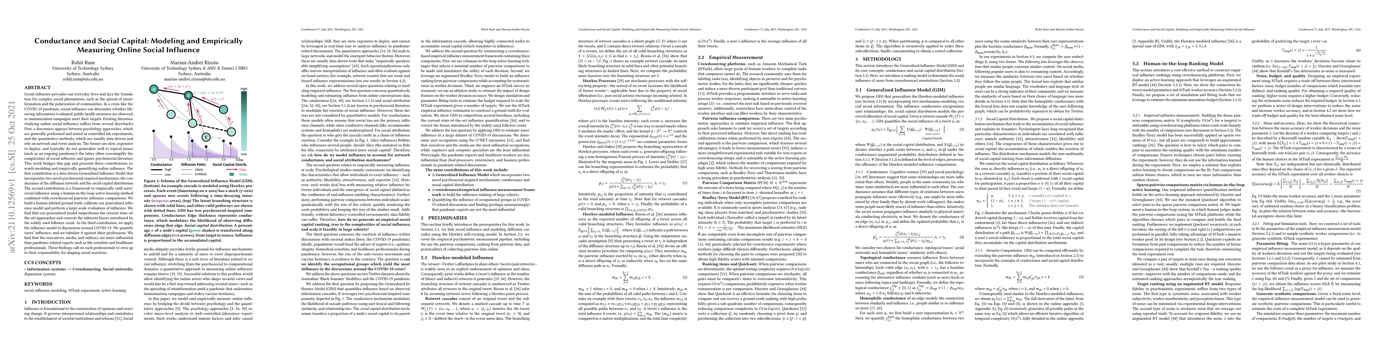 Social influence pervades our everyday lives and lays the foundation for complex social phenomena. In a crisis like the COVID-19 pandemic, social influence can determine whether life-saving information is adopted. Existing literature studying online social influence suffers from several drawbacks. First, a disconnect appears between psychology approaches, which are generally performed and tested in controlled lab experiments, and the quantitative methods, which are usually data-driven and rely on network and event analysis. The former are slow, expensive to deploy, and typically do not generalize well to topical issues (such as an ongoing pandemic); the latter often oversimplify the complexities of social influence and ignore psychosocial literature. This work bridges this gap and presents three contributions towards modeling and empirically quantifying online influence. The first contribution is a data-driven Generalized Influence Model that incorporates two novel psychosocial-inspired mechanisms: the conductance of the diffusion network and the social capital distribution. The second contribution is a framework to empirically rank users' social influence using a human-in-the-loop active learning method combined with crowdsourced pairwise influence comparisons. We build a human-labeled ground truth, calibrate our generalized influence model and perform a large-scale evaluation of influence. We find that our generalized model outperforms the current state-of-the-art approaches and corrects the inherent biases introduced by the widely used follower count. As the third contribution, we apply the influence model to discussions around COVID-19. We quantify users' influence, and we tabulate it against their professions. We find that the executives, media, and military are more influential than pandemic-related experts such as life scientists and healthcare professionals.