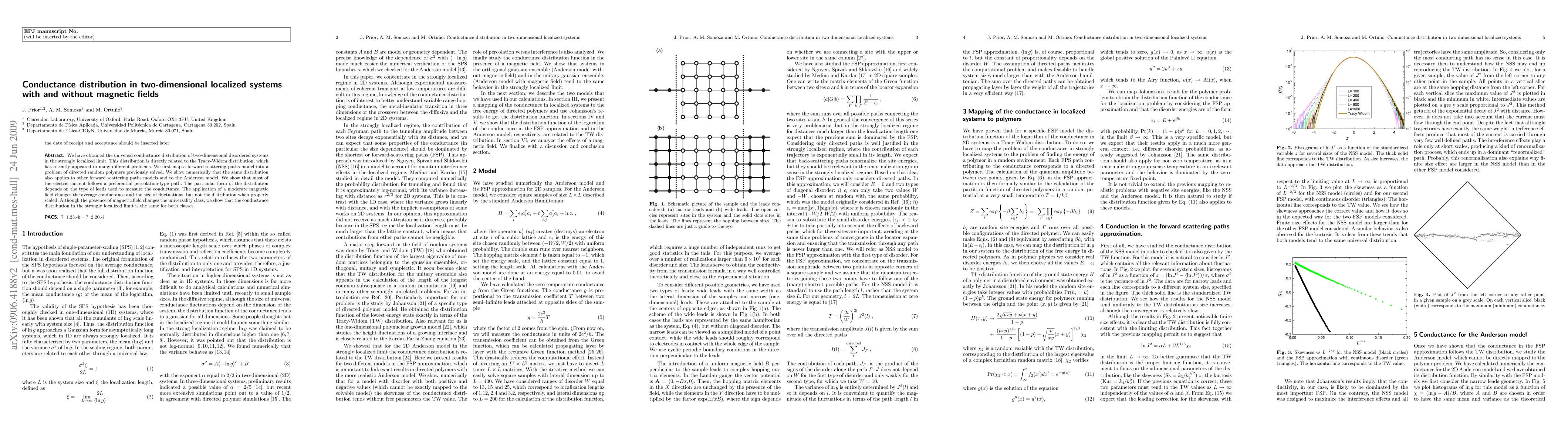 This paper investigates the universal conductance distribution in two-dimensional localized systems, showing its relation to the Tracy-Widom distribution. It demonstrates that this distribution applies to various models, including the Anderson model, and remains unchanged under scaling despite magnetic field effects.