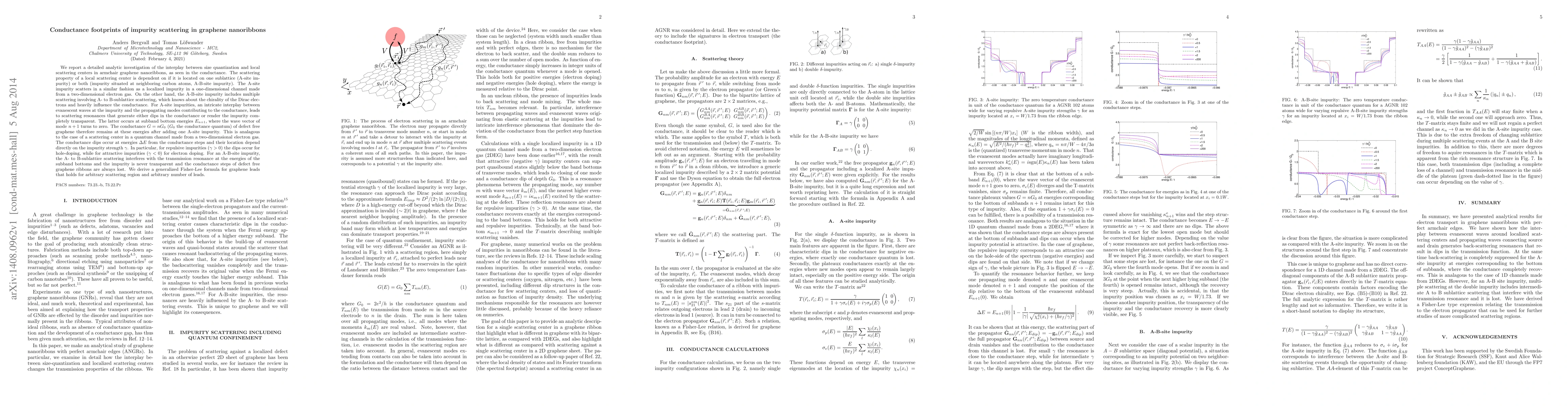 This paper investigates the impact of impurity scattering on the conductance of armchair graphene nanoribbons, revealing that A-site impurities behave like one-dimensional channel scatterers, while A-B-site impurities disrupt conductance steps due to A-to-B sublattice scattering. The study derives a generalized Fisher-Lee formula applicable to various scattering regions and lead configurations.