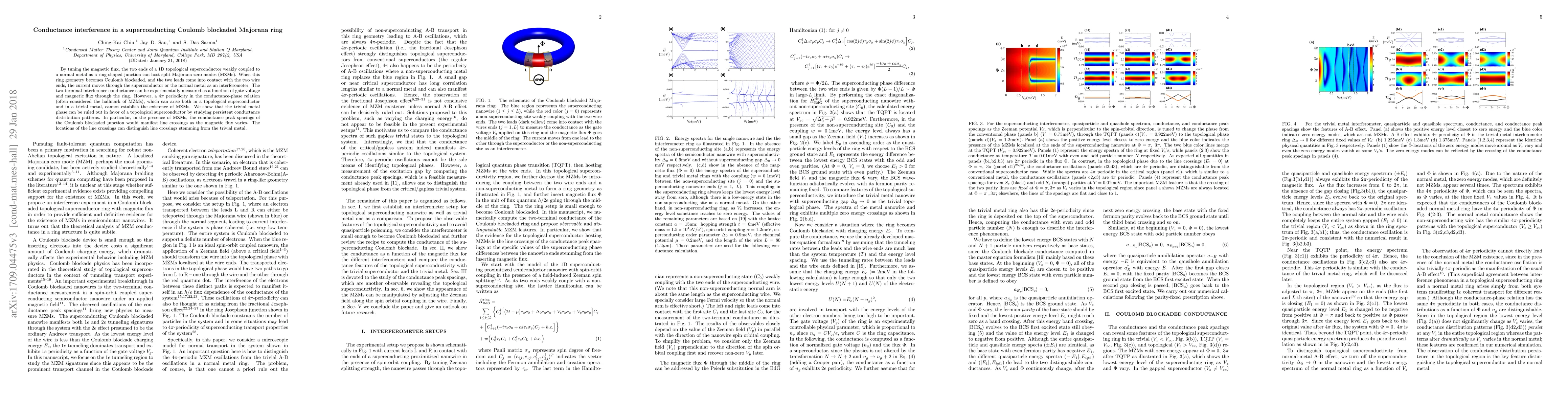 This paper investigates conductance interference in a superconducting ring with Majorana zero modes, demonstrating that persistent conductance patterns and line crossing phenomena can distinguish topological superconductivity from trivial metal phases, despite both showing $4\pi$ periodicity in conductance-phase relation.