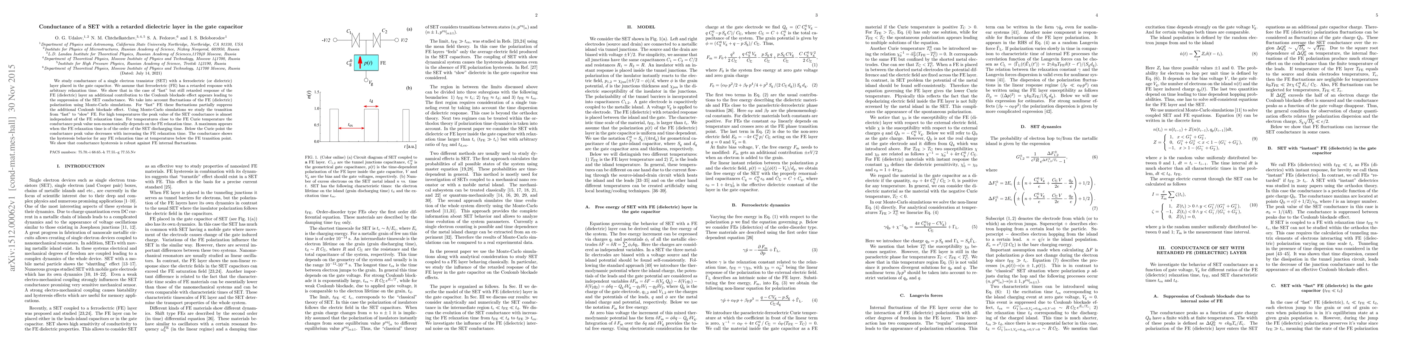 This research investigates the impact of a retarded ferroelectric layer in a single electron transistor's gate capacitor on its conductance. Utilizing Monte-Carlo simulations, it reveals that a 'fast' but still retarded ferroelectric response suppresses SET conductance due to an additional Coulomb blockade effect. The study finds that conductance peak value is nearly independent of FE relaxation time at high temperatures, shows a maximum at a specific relaxation time near Curie temperature, and displays hysteresis behavior below Curie point, robust against FE internal fluctuations.