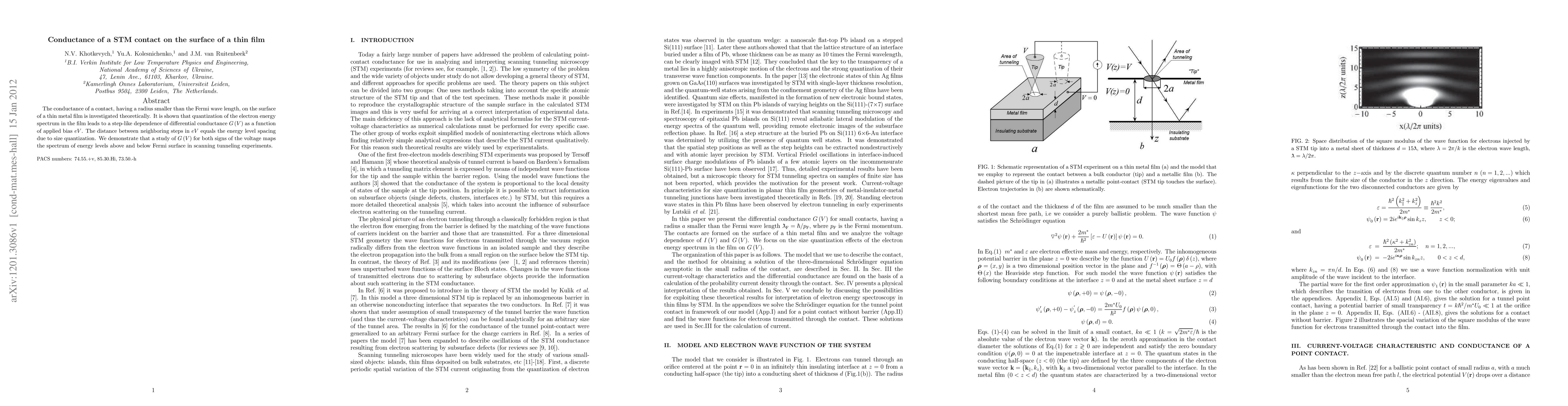 The conductance of a contact, having a radius smaller than the Fermi wave length, on the surface of a thin metal film is investigated theoretically. It is shown that quantization of the electron energy spectrum in the film leads to a step-like dependence of differential conductance G(V) as a function of applied bias eV. The distance between neighboring steps in eV equals the energy level spacing due to size quantization. We demonstrate that a study of G(V) for both signs of the voltage maps the spectrum of energy levels above and below Fermi surface in scanning tunneling experiments.