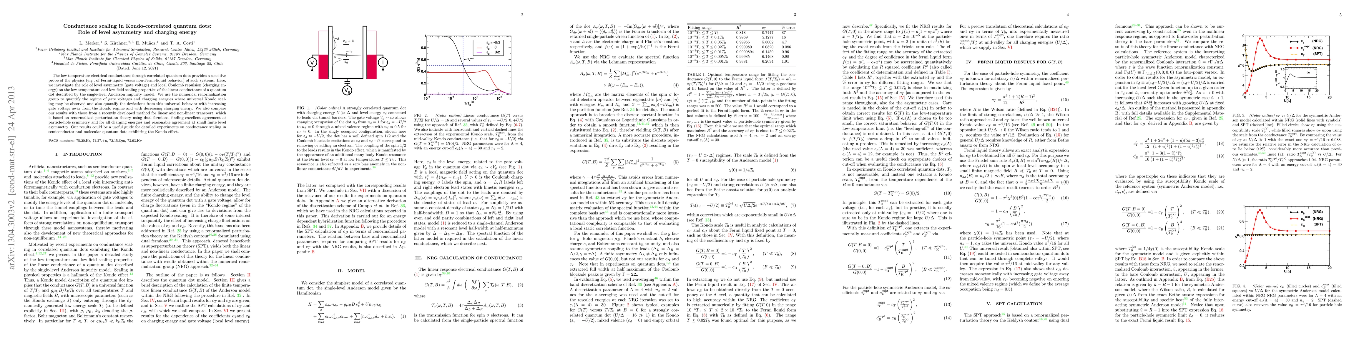 This paper investigates the impact of level asymmetry and charging energy on the conductance scaling in Kondo correlated quantum dots using the numerical renormalization group. The study finds universal Kondo scaling under specific conditions and quantifies deviations from this behavior, providing a useful guide for experimental studies on semiconductor and molecular quantum dots.