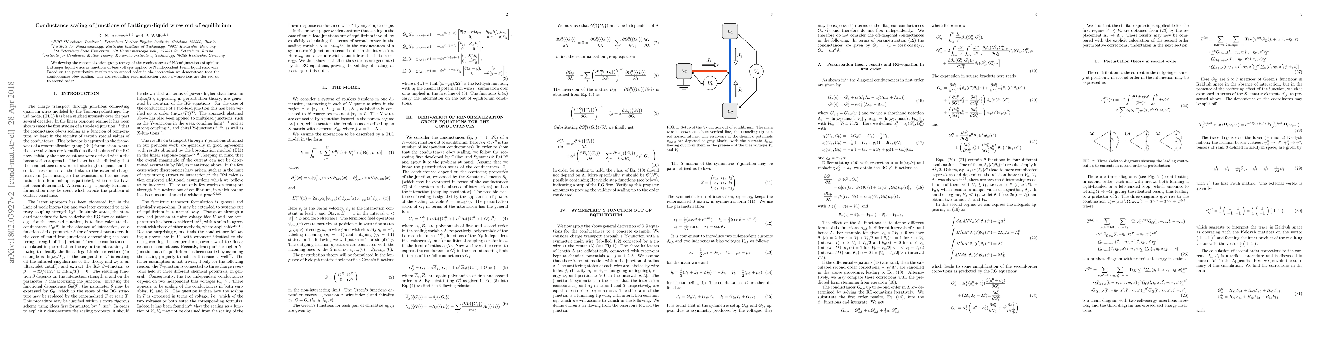 We develop the renormalization group theory of the conductances of N-lead junctions of spinless Luttinger-liquid wires as functions of bias voltages applied to N independent Fermi-liquid reservoirs. Based on the perturbative results up to second order in the interaction we demonstrate that the conductances obey scaling. The corresponding renormalization group $\beta$ functions are derived up to second order.