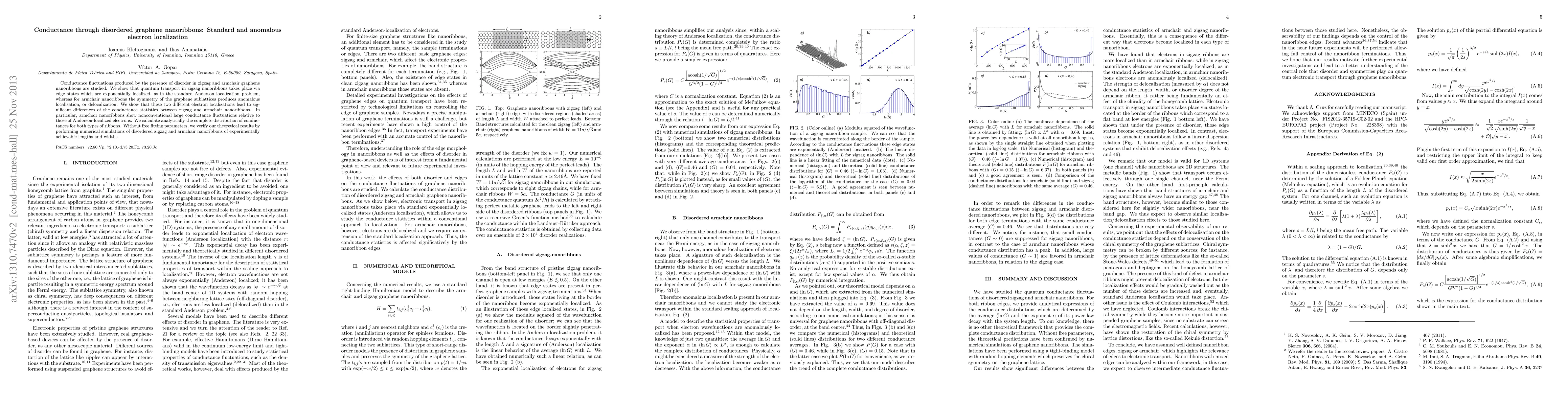 This paper investigates conductance fluctuations in disordered zigzag and armchair graphene nanoribbons, revealing that quantum transport in zigzag nanoribbons exhibits standard exponential localization via edge states, whereas armchair nanoribbons show anomalous localization due to symmetry effects. This results in significantly different conductance statistics, with armchair nanoribbons displaying larger conductance fluctuations than Anderson-localized electrons.