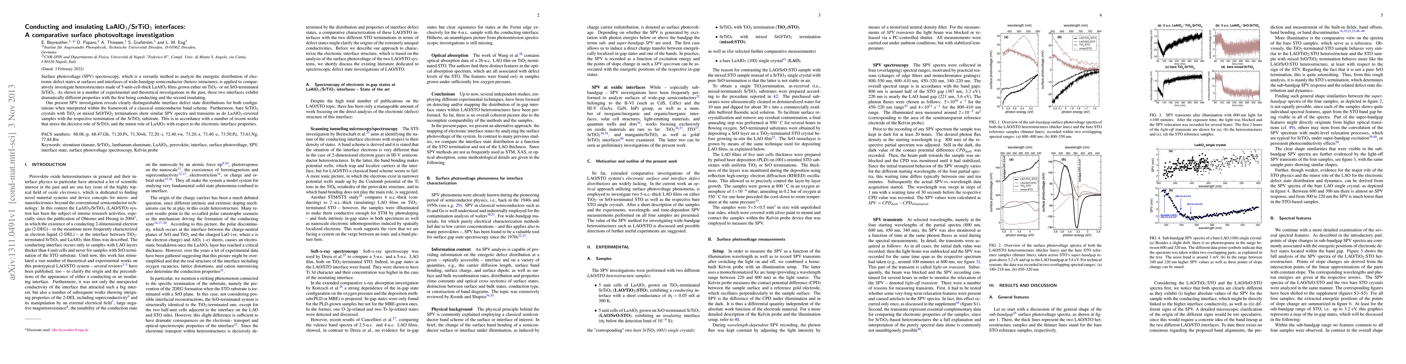 Surface photovoltage (SPV) spectroscopy, which is a versatile method to analyze the energetic distribution of electronic defect states at surfaces and interfaces of wide-bandgap semiconductor (hetero-)structures, is applied to comparatively investigate heterostructures made of 5-unit-cell-thick LaAlO$_3$ films grown either on TiO$_2$- or on SrO-terminated SrTiO$_3$. As shown in a number of experimental and theoretical investigations in the past, these two interfaces exhibit dramatically different properties with the first being conducting and the second insulating. Our present SPV investigation reveals clearly distinguishable interface defect state distributions for both configurations when interpreted within the framework of a classical semiconductor band scheme. Furthermore, bare SrTiO$_3$ crystals with TiO$_2$ or mixed SrO/TiO$_2$ terminations show similar SPV spectra and transients as do LaAlO$_3$-covered samples with the respective termination of the SrTiO$_3$ substrate. This is in accordance with a number of recent works that stress the decisive role of SrTiO$_3$ and the minor role of LaAlO$_3$ with respect to the electronic interface properties.