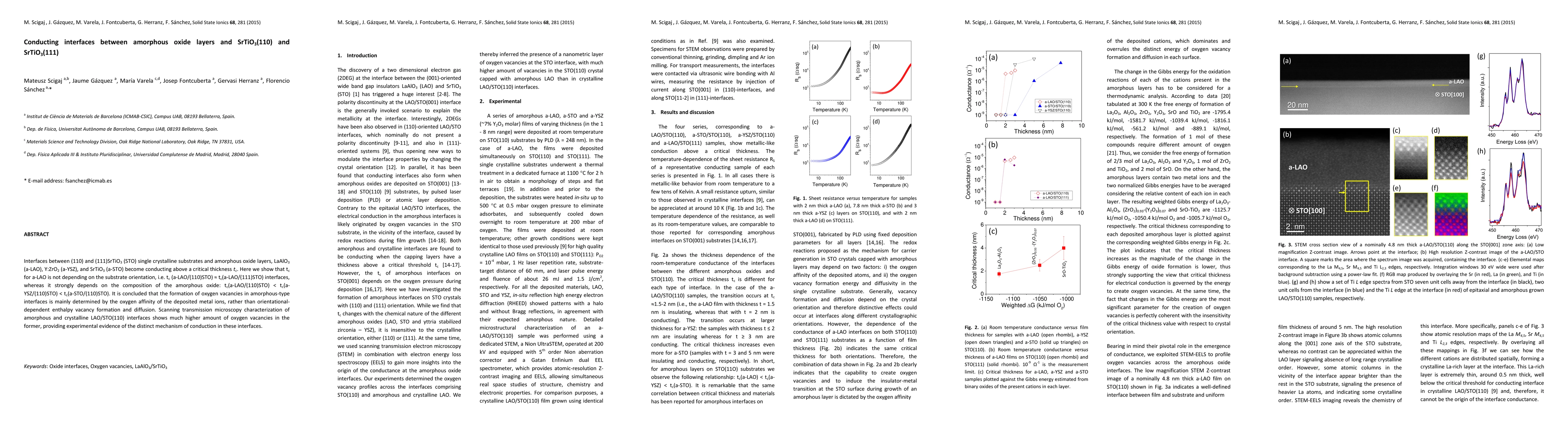 This study investigates conducting interfaces between amorphous oxide layers and SrTiO3 substrates, finding that the critical thickness for conductivity in LaAlO3 (a-LAO) interfaces does not depend on substrate orientation but varies significantly with the composition of the amorphous oxide. The research concludes that oxygen vacancy formation is primarily influenced by the oxygen affinity of the metal ions rather than substrate orientation.