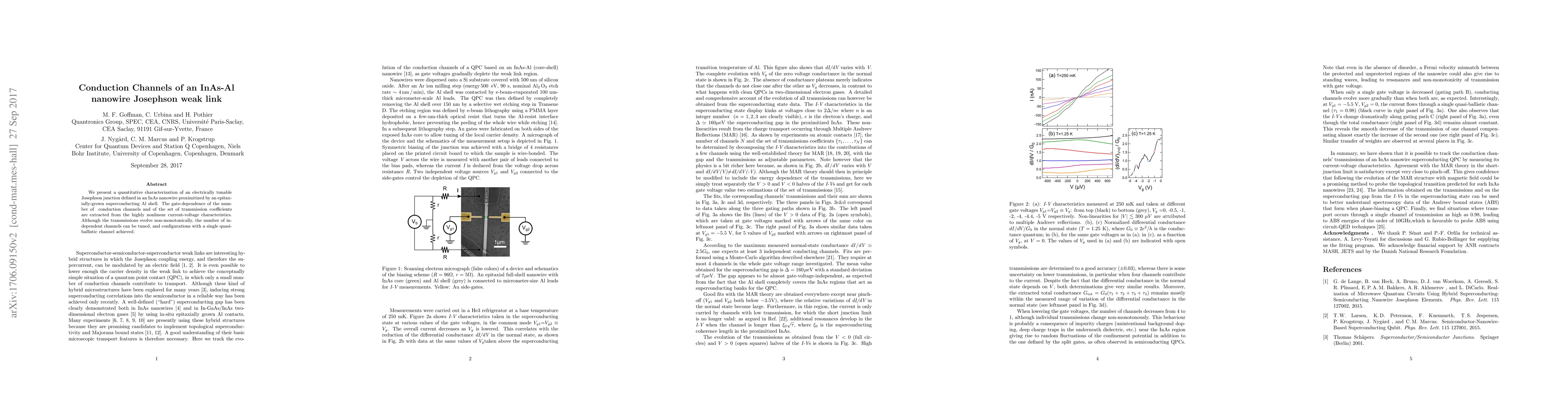 This paper characterizes a tunable Josephson junction in an InAs nanowire with a superconducting Al shell, showing how the number of conduction channels and transmission coefficients can be controlled via a gate, achieving configurations with a single quasi-ballistic channel. The study uses nonlinear current-voltage characteristics to extract these properties.