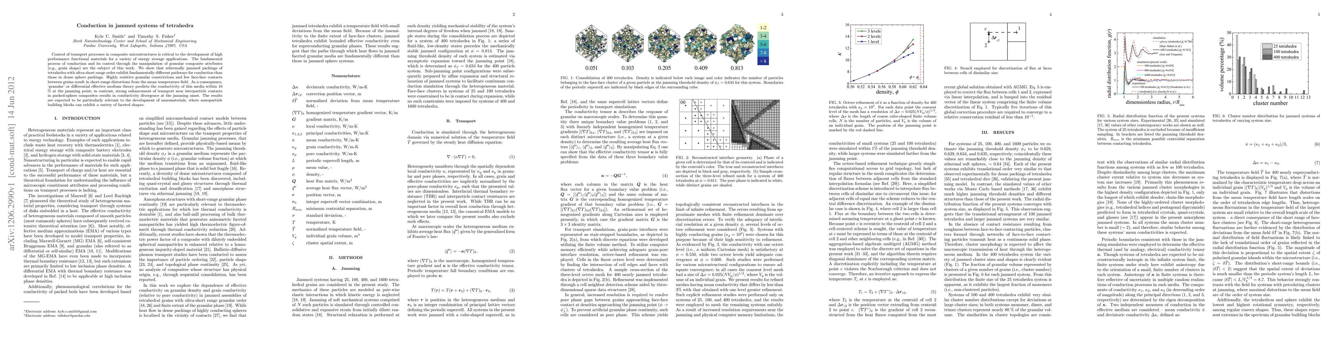 The research distinguishes itself by examining conduction in tetrahedral systems, contrasting their behavior with dense sphere packings, and highlighting the role of short-range heterogeneous fluctuations in temperature fields.