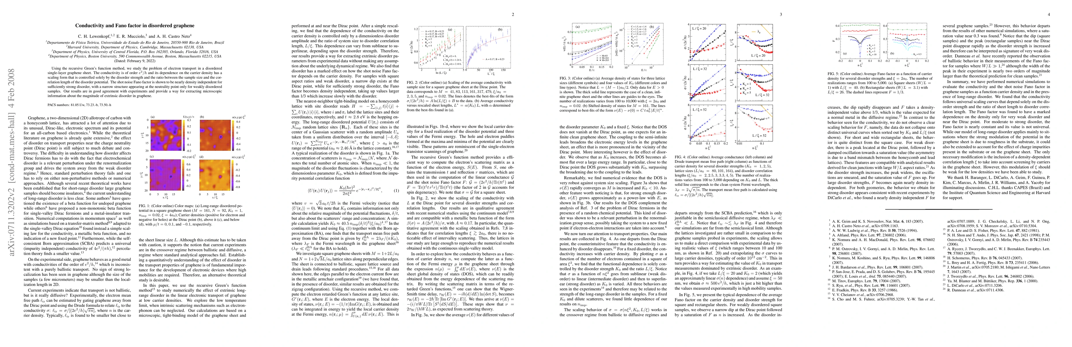 This study employs the recursive Green's function method to analyze electron transport in disordered single-layer graphene, revealing that conductivity scales with disorder strength and carrier density. The Fano factor exhibits a narrow dip at weak disorder near the neutrality point and becomes nearly doping independent at strong disorder, aligning well with experimental observations.