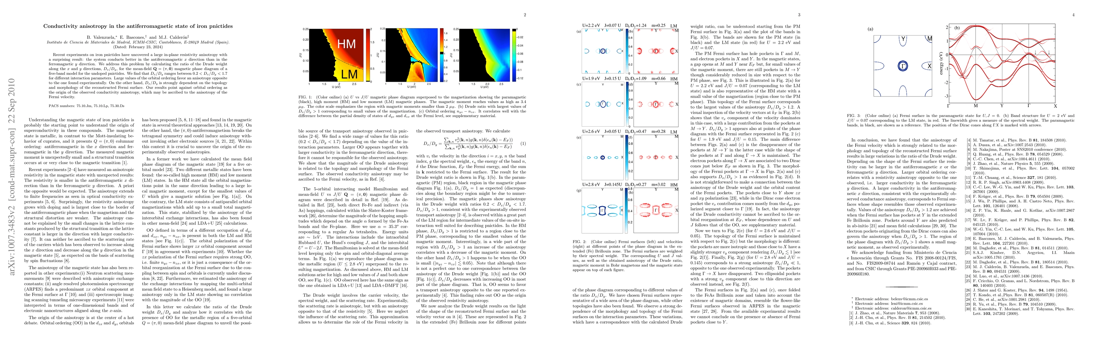 This paper investigates the conductivity anisotropy in iron pnictides' antiferromagnetic state, finding that the system conducts better in the antiferromagnetic x direction than in the ferromagnetic y direction. The study concludes that the observed anisotropy is unlikely due to orbital ordering, suggesting instead that it may arise from the anisotropy of the Fermi velocity.