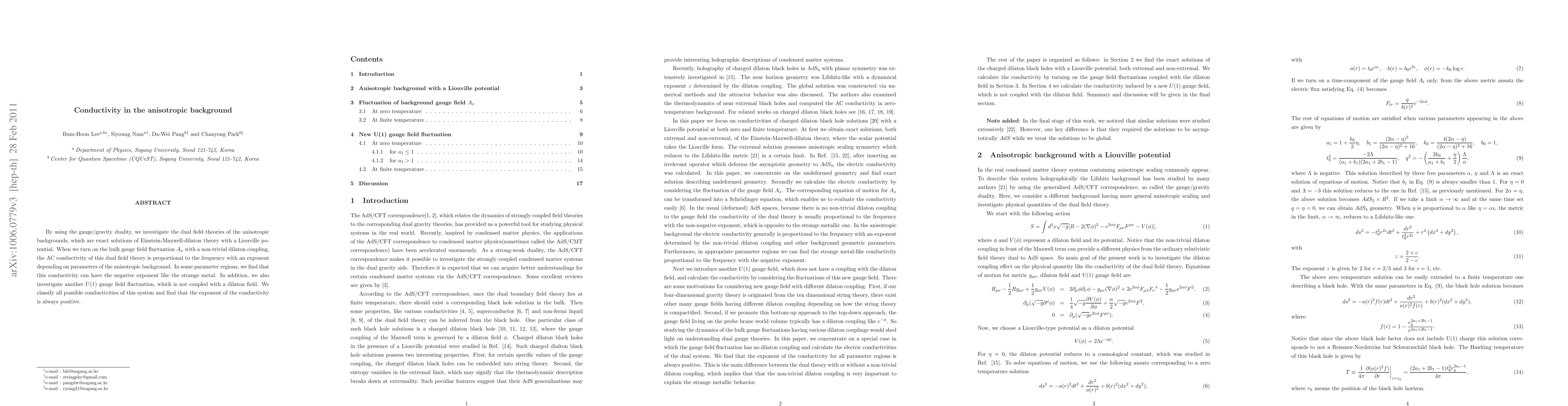 By using the gauge/gravity duality, we investigate the dual field theories of the anisotropic backgrounds, which are exact solutions of Einstein-Maxwell-dilaton theory with a Liouville potential. When we turn on the bulk gauge field fluctuation $A_x$ with a non-trivial dilaton coupling, the AC conductivity of this dual field theory is proportional to the frequency with an exponent depending on parameters of the anisotropic background. In some parameter regions, we find that this conductivity can have the negative exponent like the strange metal. In addition, we also investigate another U(1) gauge field fluctuation, which is not coupled with a dilaton field. We classify all possible conductivities of this system and find that the exponent of the conductivity is always positive.