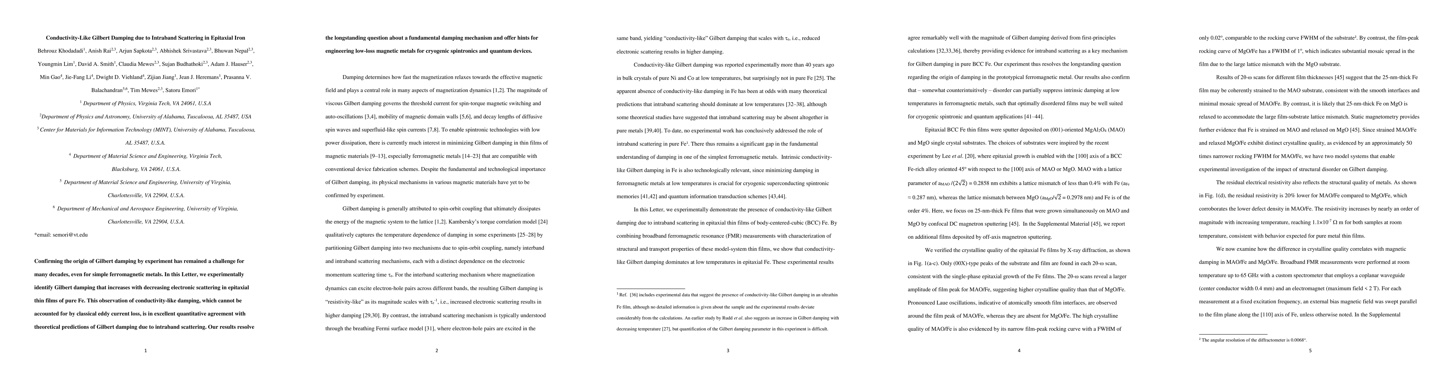 This study experimentally identifies Gilbert damping in epitaxial iron films, revealing that damping increases with reduced electronic scattering. The observed conductivity-like damping aligns with theoretical predictions of intraband scattering, resolving a longstanding debate and suggesting potential for low-loss magnetic materials in cryogenic spintronics.