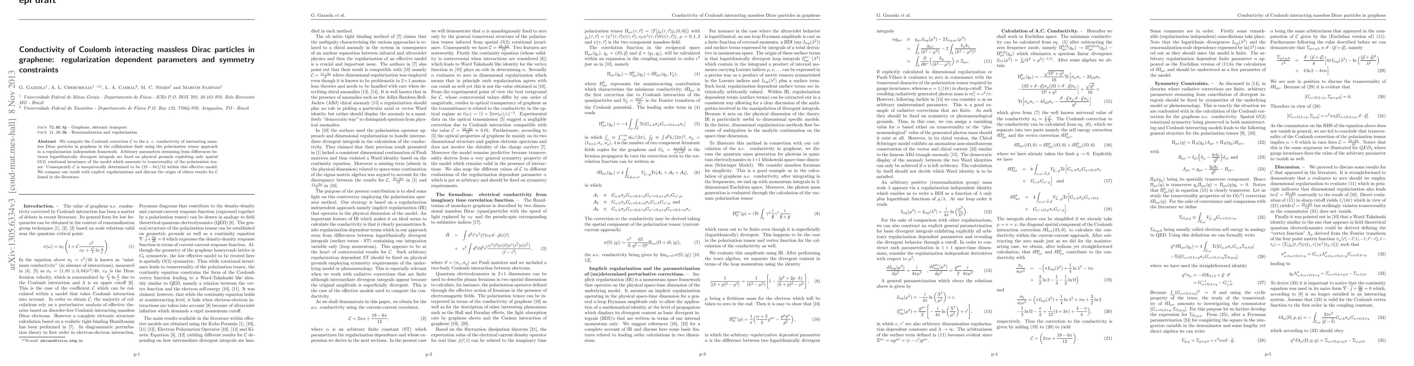 Researchers computed the conductivity of interacting massless Dirac particles in graphene with a regularization-independent framework, finding a Coulomb correction of $(19- 6i12)$.