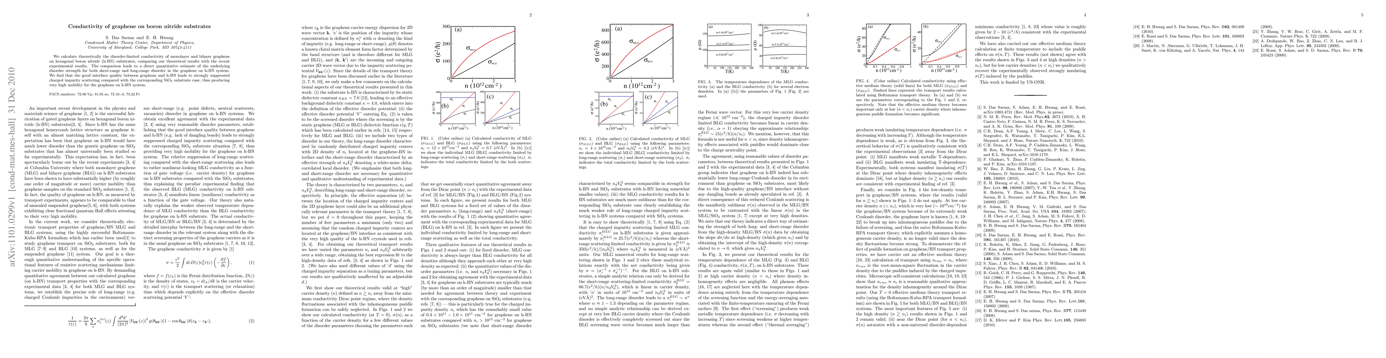 This paper theoretically analyzes the disorder-limited conductivity of graphene on hexagonal boron nitride substrates, showing it results in high mobility due to a superior interface quality that suppresses charged impurity scattering compared to SiO$_2$ substrates. Experimental results are used to quantify the underlying disorder strength in the graphene-hBN system.