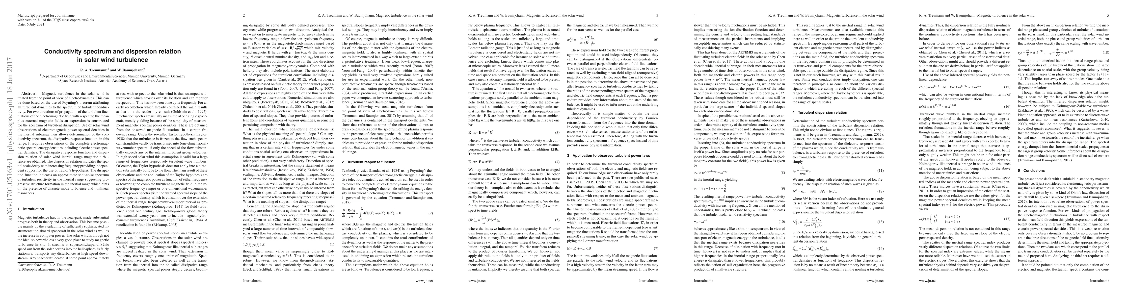 This paper investigates the electrodynamic properties of solar wind turbulence, deriving expressions for the conductivity spectrum and dispersion relation using observations of electromagnetic power spectral densities. The findings suggest progressive structure formation and discrete mode turbulence in the inertial range.