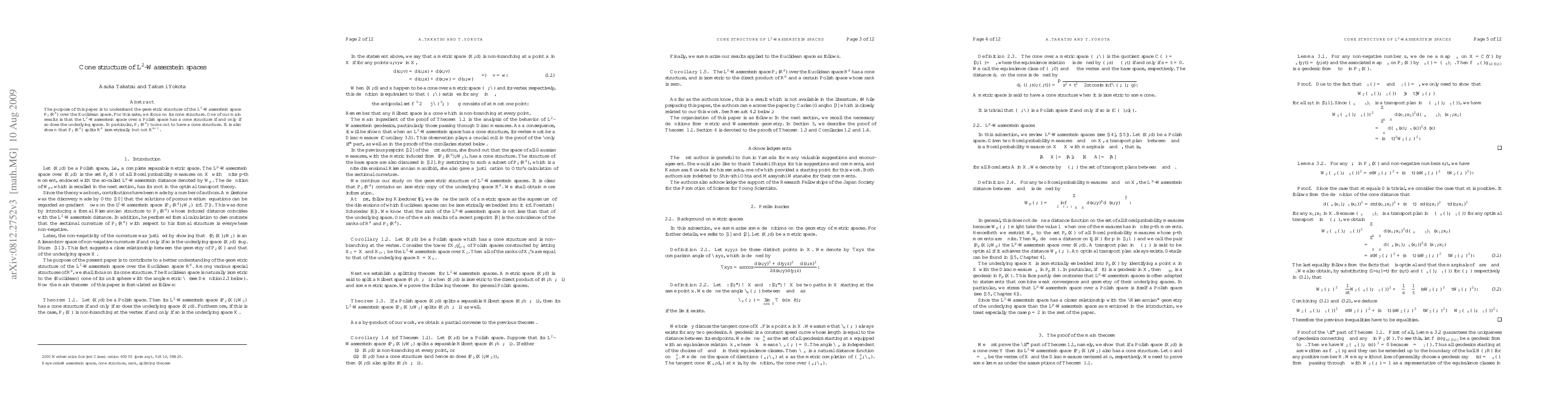 The purpose of this paper is to understand the geometric structure of the $L^2$-Wasserstein space $\pp$ over the Euclidean space.For this sake, we focus on its cone structure.One of our main results is that the $L^2$-Wasserstein space over a Polish space has a cone structure if and only if so does the underlying space.In particular, $\pp$ turns out to have a cone structure.It is also shown that $\pp$ splits $\R^d$ isometrically but not $\R^{d+1}$.