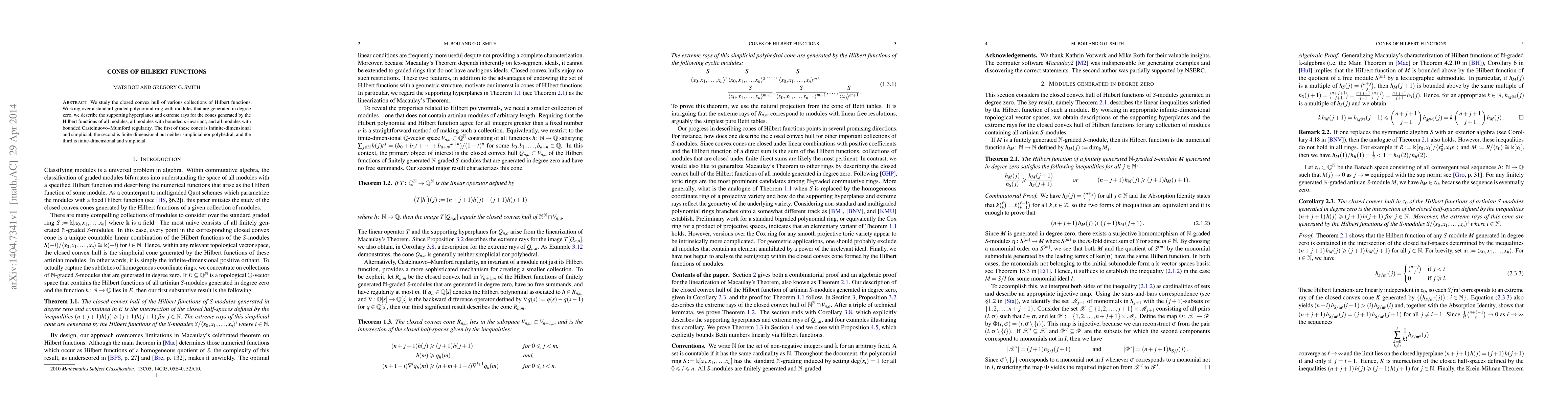 This paper investigates the closed convex hulls of Hilbert functions for various module collections, identifying supporting hyperplanes and extreme rays. The cone of all Hilbert functions is infinite-dimensional and simplicial, while the cone of modules with bounded a-invariant is finite-dimensional but neither simplicial nor polyhedral, and the cone of modules with bounded regularity is finite-dimensional and simplicial.
