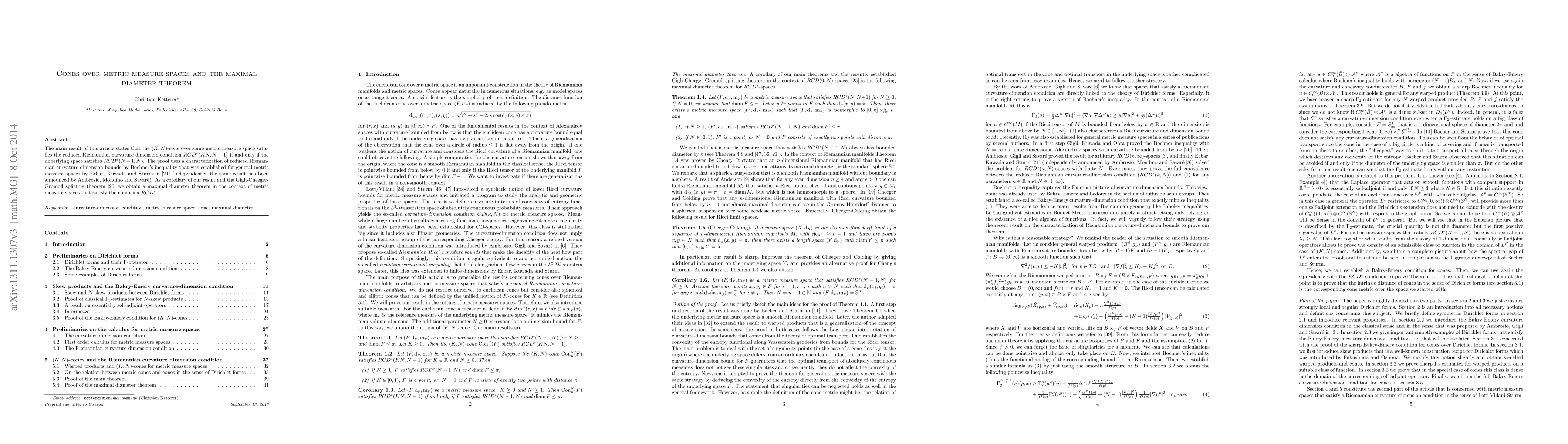 This paper proves that the (K;N)-cone over a metric measure space meets the RCD^*(KN;N+1) condition if and only if the base space satisfies RCD^*(N-1;N). It also establishes a maximal diameter theorem for metric measure spaces with reduced Riemannian curvature-dimension conditions.