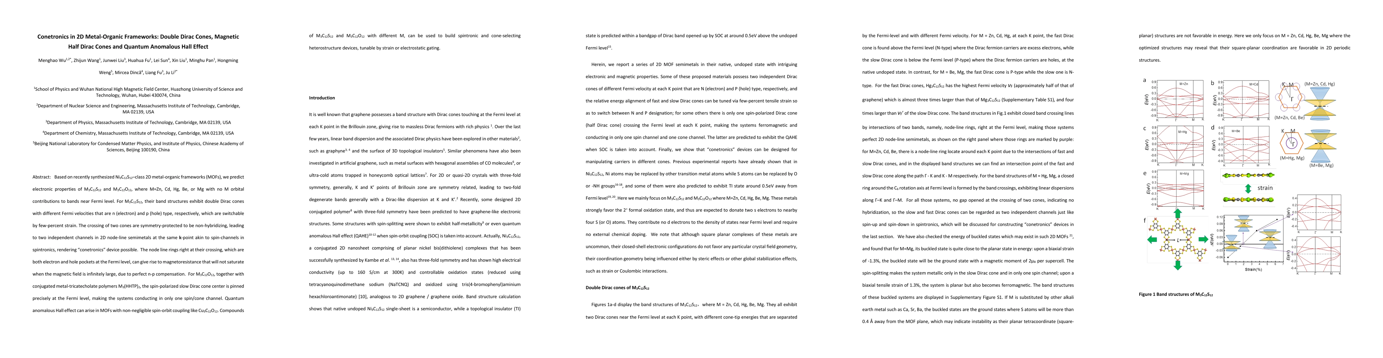 Researchers predict electronic properties of 2D metal-organic frameworks, discovering double Dirac cones and magnetic half Dirac cones with potential for quantum anomalous Hall effect, enabling spintronic devices.