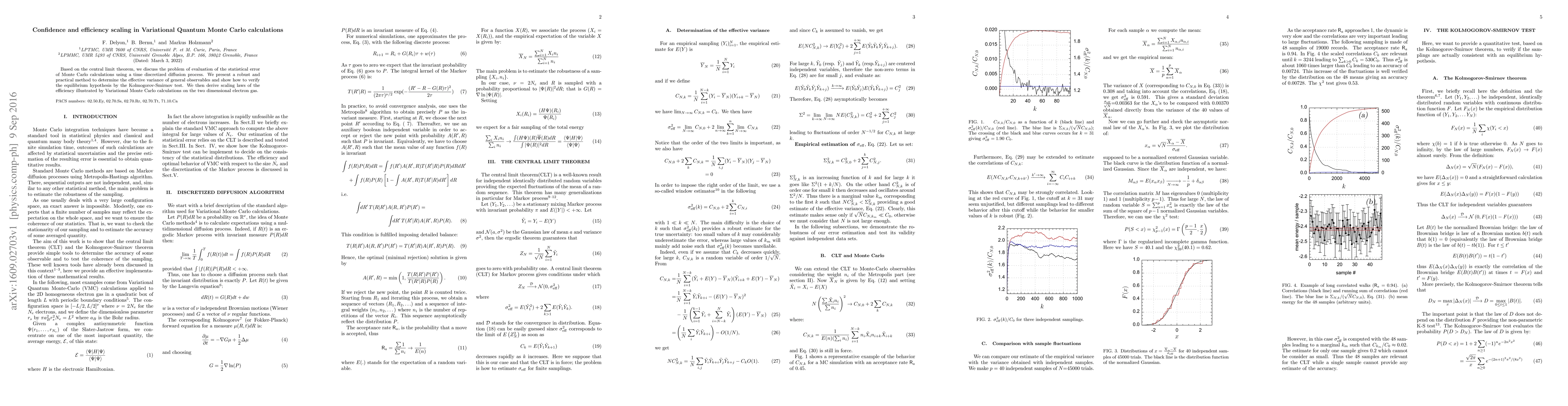 This paper develops a method for evaluating the statistical error in Variational Quantum Monte Carlo calculations via the central limit theorem, and presents scaling laws for efficiency using a practical approach verified by the Kolmogorov-Smirnov test on two-dimensional electron gas calculations.