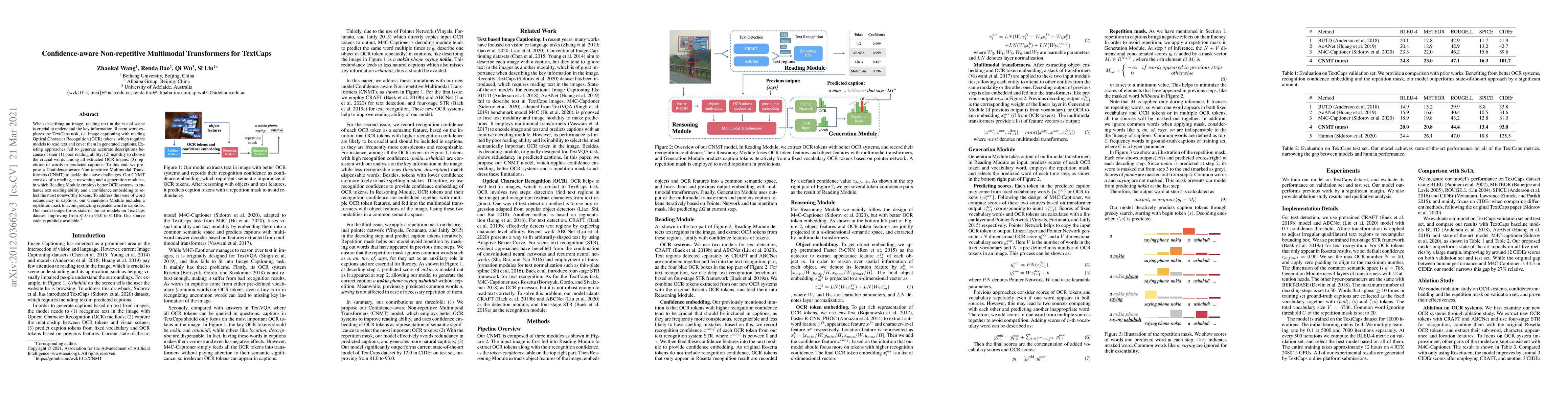 Researchers propose a Confidence-aware Non-repetitive Multimodal Transformer (CNMT) to improve image captioning with reading Optical Character Recognition tokens, achieving state-of-the-art results on the TextCaps dataset.