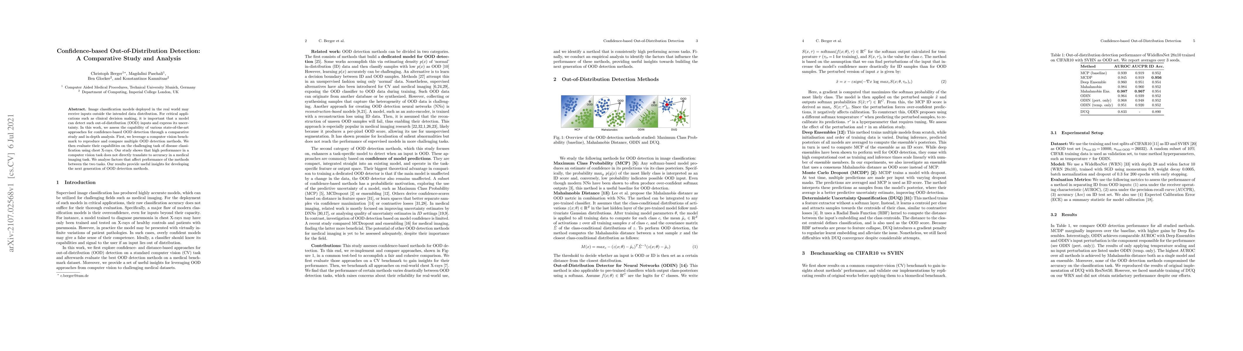 This paper compares various state-of-the-art methods for confidence-based out-of-distribution detection, assessing their performance on both computer vision and medical imaging tasks. The study reveals that high performance in general computer vision does not guarantee accuracy in medical imaging, providing insights for future OOD detection method development.