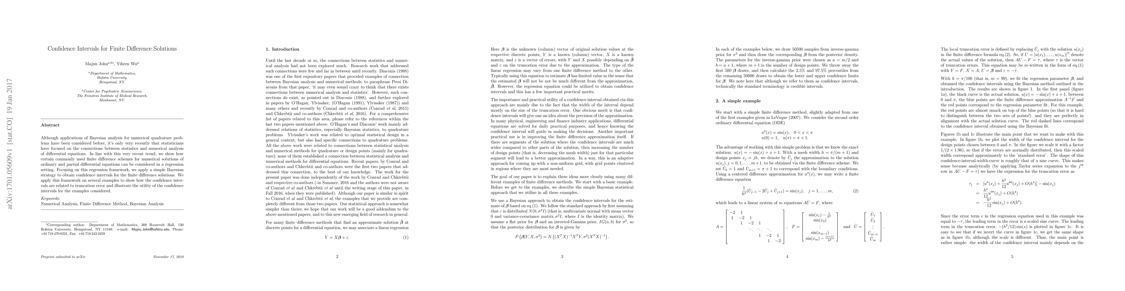 The paper introduces a Bayesian regression framework for deriving confidence intervals for finite difference solutions of differential equations, linking statistical uncertainty quantification with numerical analysis.