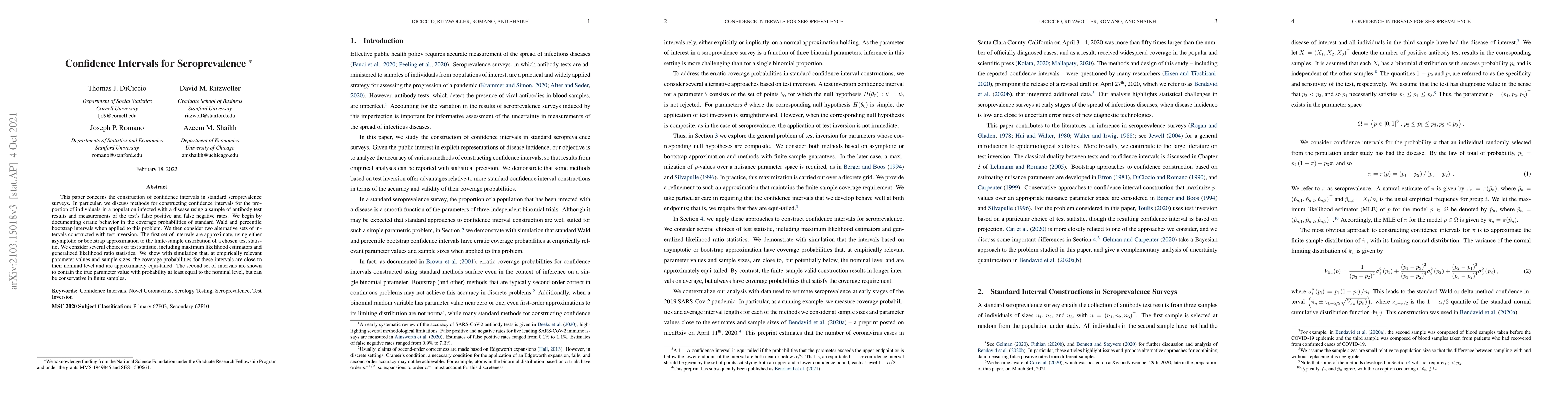 This paper develops improved confidence intervals for estimating seroprevalence using antibody test results, addressing issues with standard Wald and bootstrap intervals. It proposes alternative intervals based on test inversion, showing through simulations that these new methods achieve better coverage probabilities close to the nominal level.