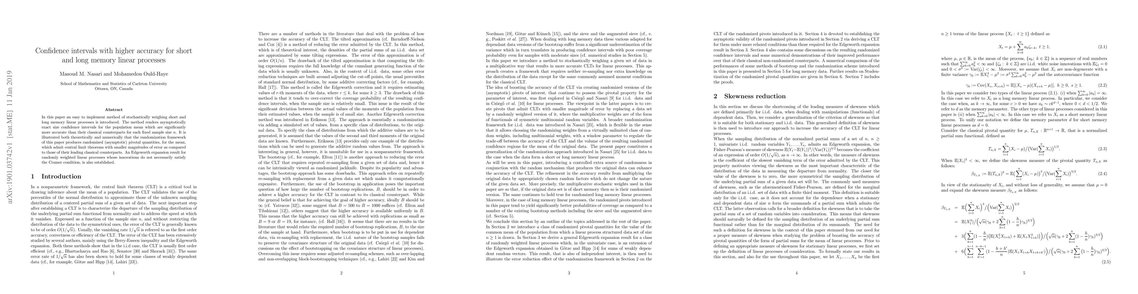 In this paper an easy to implement method of stochastically weighing short and long memory linear processes is introduced. The method renders asymptotically exact size confidence intervals for the population mean which are significantly more accurate than their classical counterparts for each fixed sample size $n$. It is illustrated both theoretically and numerically that the randomization framework of this paper produces randomized (asymptotic) pivotal quantities, for the mean, which admit central limit theorems with smaller magnitudes of error as compared to those of their leading classical counterparts. An Edgeworth expansion result for randomly weighted linear processes whose innovations do not necessarily satisfy the Cramer condition, is also established.