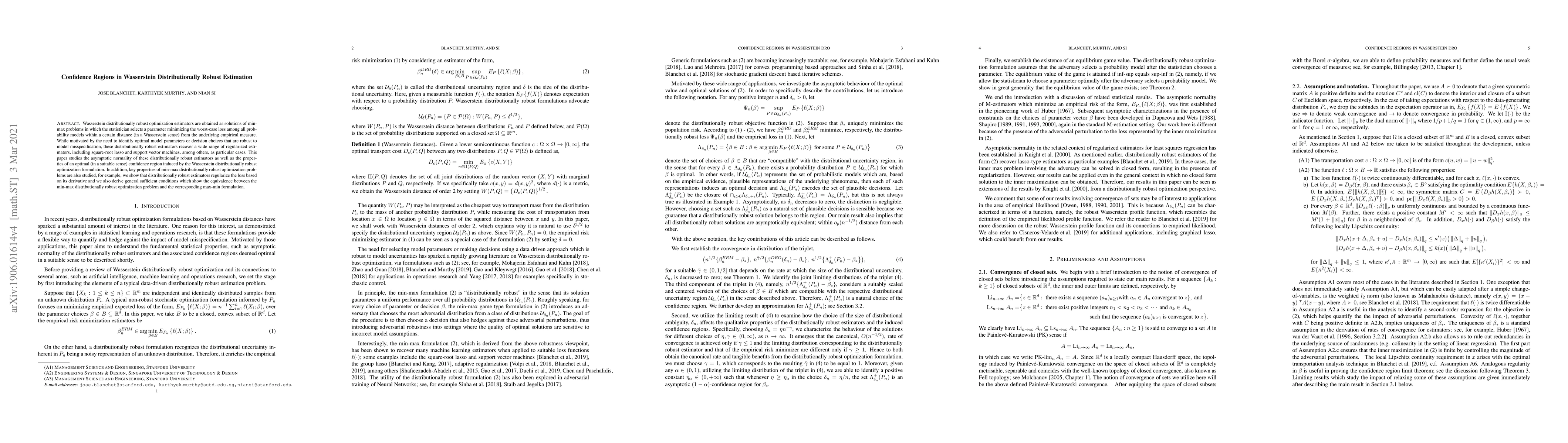 This paper investigates the asymptotic normality of Wasserstein distributionally robust estimators and explores the properties of confidence regions derived from the Wasserstein distributionally robust optimization framework. It also examines the min-max optimization problem's characteristics and establishes conditions for the equivalence between min-max and max-min formulations.