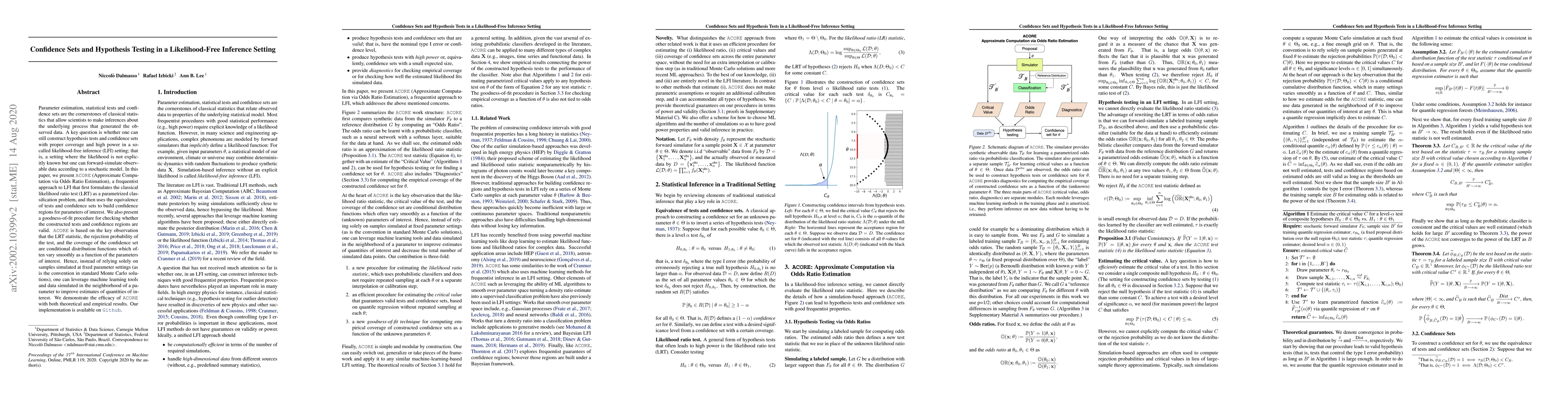 This paper introduces $\texttt{ACORE}$, a frequentist method for likelihood-free inference (LFI) that constructs hypothesis tests and confidence sets by formulating the likelihood ratio test as a classification problem and leveraging machine learning to improve estimates. The method is validated through theoretical and empirical results.