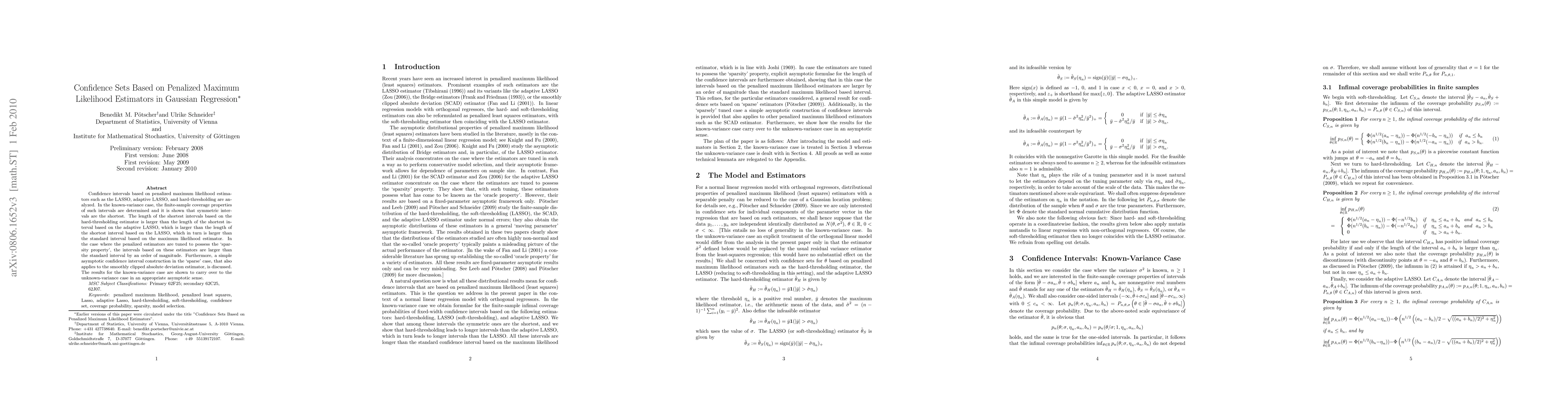 This paper analyzes confidence intervals based on penalized maximum likelihood estimators in Gaussian regression, showing that symmetric intervals are the shortest. It compares the lengths of intervals from LASSO, adaptive LASSO, and hard-thresholding, finding that adaptive LASSO yields shorter intervals than LASSO, which in turn is shorter than the standard interval. In sparse cases, penalized intervals are significantly larger.
