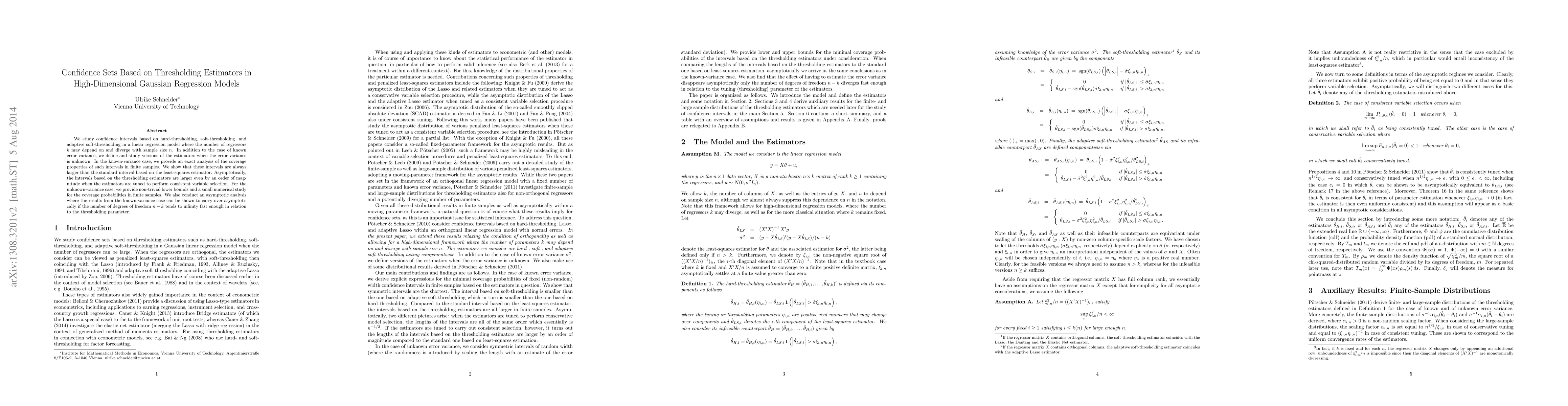 This paper explores confidence intervals for high-dimensional Gaussian regression models using thresholding estimators, finding they are larger than standard intervals but can provide better performance in cases with unknown error variance.