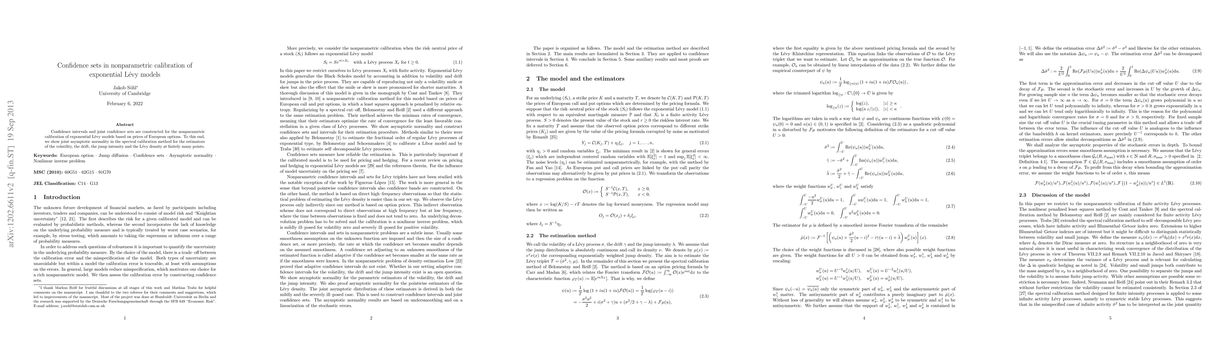 This paper constructs confidence intervals and joint confidence sets for the calibration of exponential Lévy models using European option prices, demonstrating joint asymptotic normality for estimators of volatility, drift, jump intensity, and Lévy density via spectral calibration.