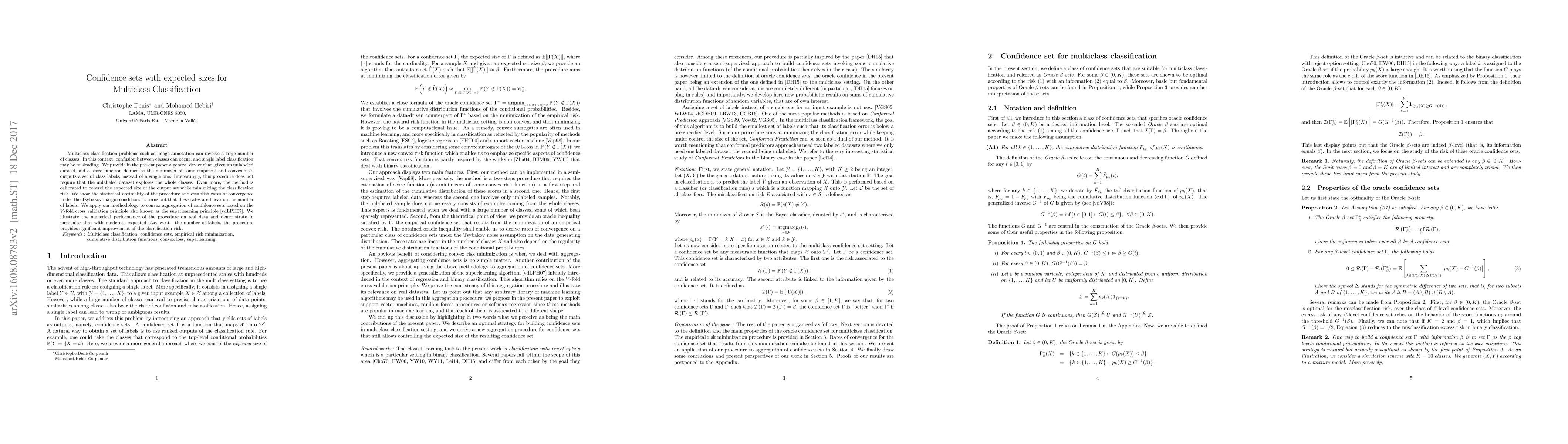 This paper introduces a method to create confidence sets for multiclass classification problems with controlled expected sizes, providing significant improvement in classification risk with moderate set size.