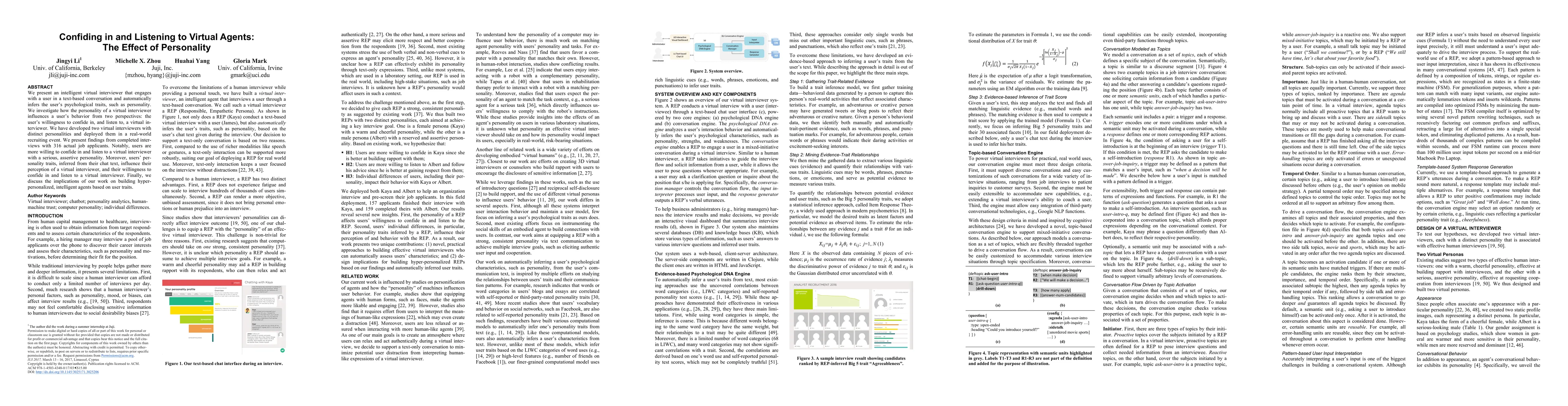 This study examines how the personality of a virtual interviewer affects users' willingness to confide in and listen to it, finding that serious, assertive personalities are more effective. Users' inferred personality traits also influence their interaction with the virtual agent, highlighting the potential for hyper-personalized intelligent agents.