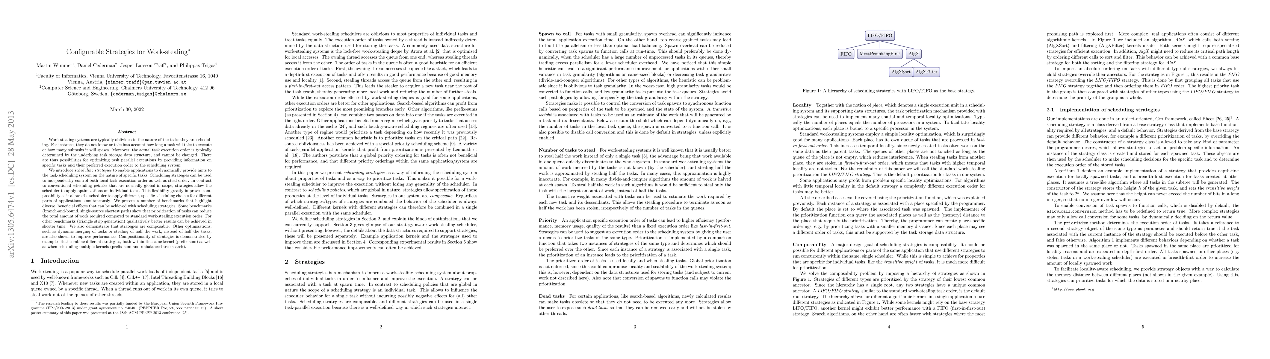 The introduction of dynamic scheduling strategies for work-stealing schedulers, enabling application-dependent, per-task scheduling decisions, is the main technical contribution.