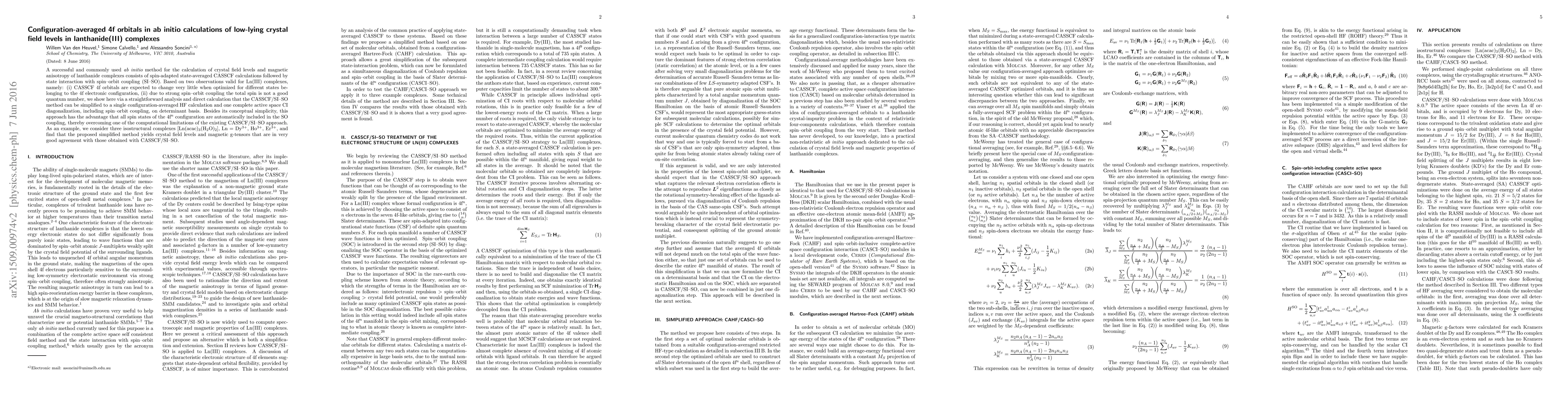 This paper proposes a simplified ab initio method for calculating crystal field levels and magnetic anisotropy in lanthanide(III) complexes, replacing the complex CASSCF/SI-SO approach with a single configuration-averaged HF calculation and a complete active space CI diagonalization including spin-orbit coupling. The new method automatically includes all spin states of the 4f$^n$ configuration, improving computational efficiency and accuracy.