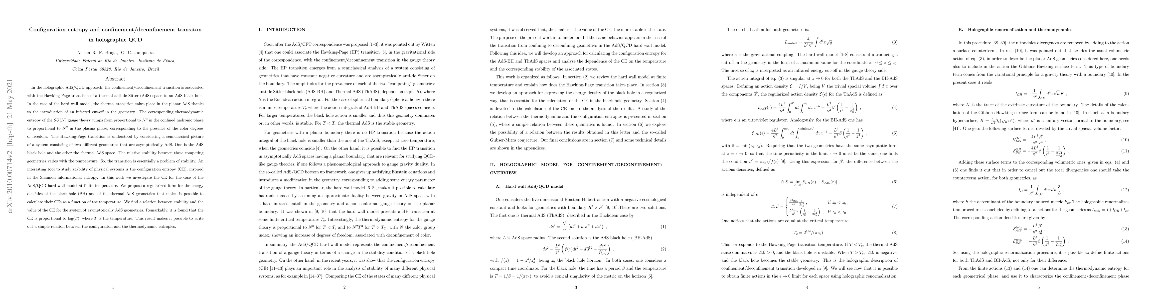 Researchers study the configuration entropy of holographic QCD at finite temperature, finding a relation between stability and entropy that can be used to write out a simple relation between thermodynamic entropies, with configuration entropy proportional to log(T).
